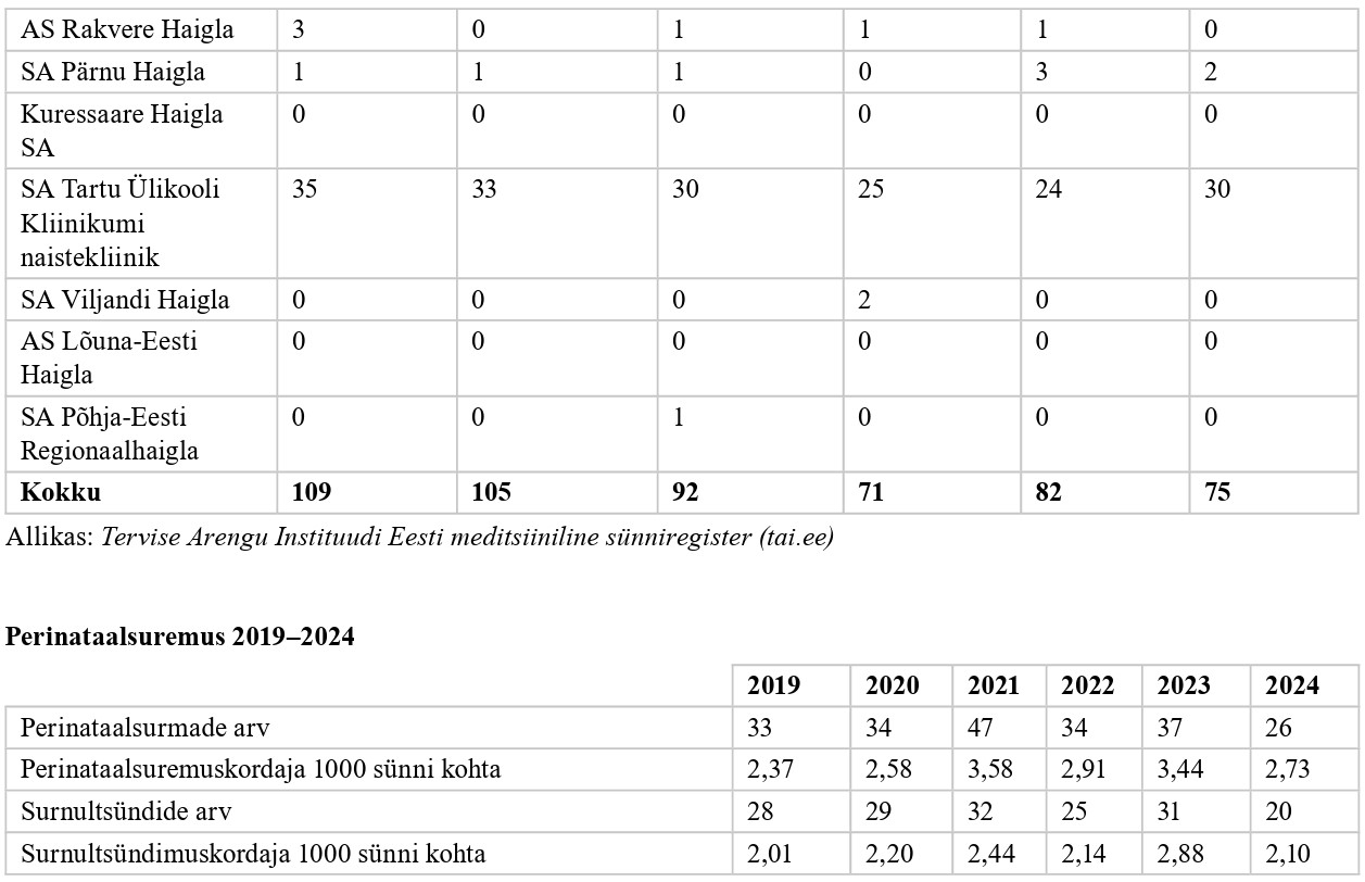 | Pille Andresson (juht) | Lastearst, neonatoloogia osakonna juhataja, AS Ida-Tallinna Keskhaigla; Eesti Perinatoloogia Selts |
