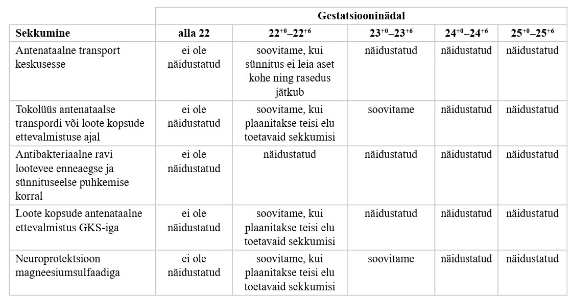 Enneaegse sünnituse ja enneaegse vastsündinu perinataalperioodi käsitlus (ajakohastatud)